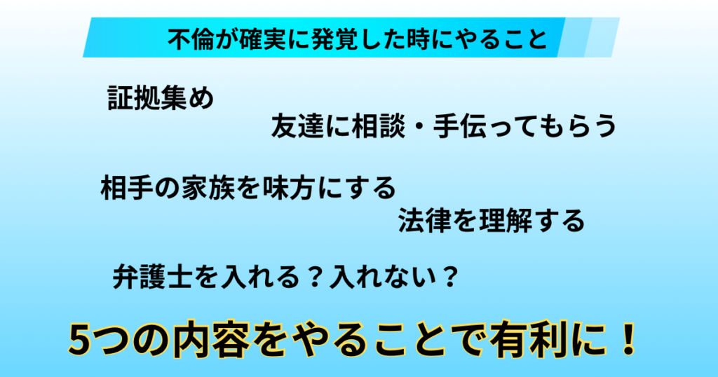 手順としては、不倫してる側に確認として、不倫をしているかどうか確認をする。