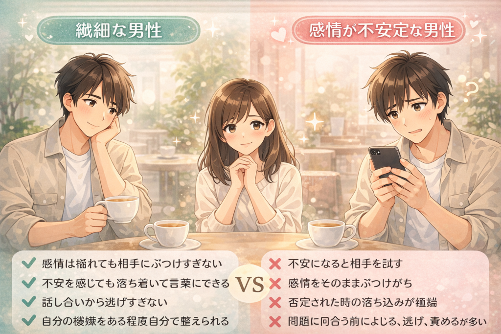 繊細な男性と“感情が不安定な男性”の違い